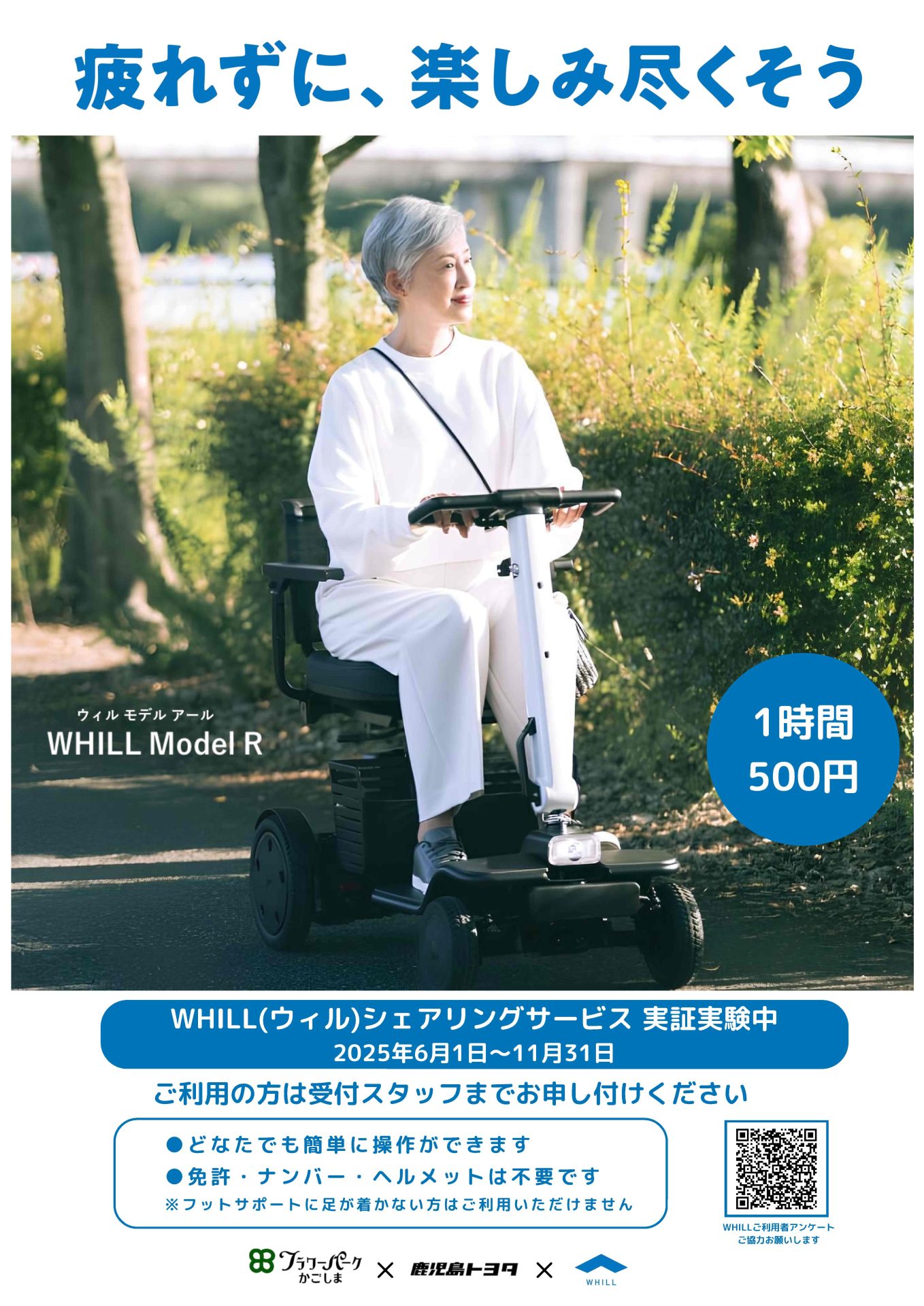 パーソナルモビリティ WHILL(ウィル)シェアリングサービス実証実験 を行っています。