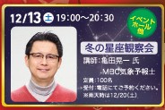 12月13日(土)開催予定の「冬の星座観察会」は、雨天が予想されるため